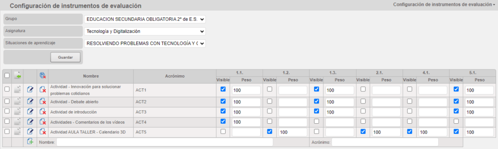 Cuando creamos la situación de aprendizaje y seleccionamos tanto las competencias específicas como los criterios de evaluación que evaluarán el grado de consecución de los saberes básicos asociados, se elaboran los instrumentos de evaluación adecuados y que serán la consecuencia de llevar a cabo la finalidad de las actividades elaboradas en el REA. Esta información se hace visible tanto por el alumnado como por las familias. De esta manera conseguimos que estén completamente informados de la evolución académica del alumno.