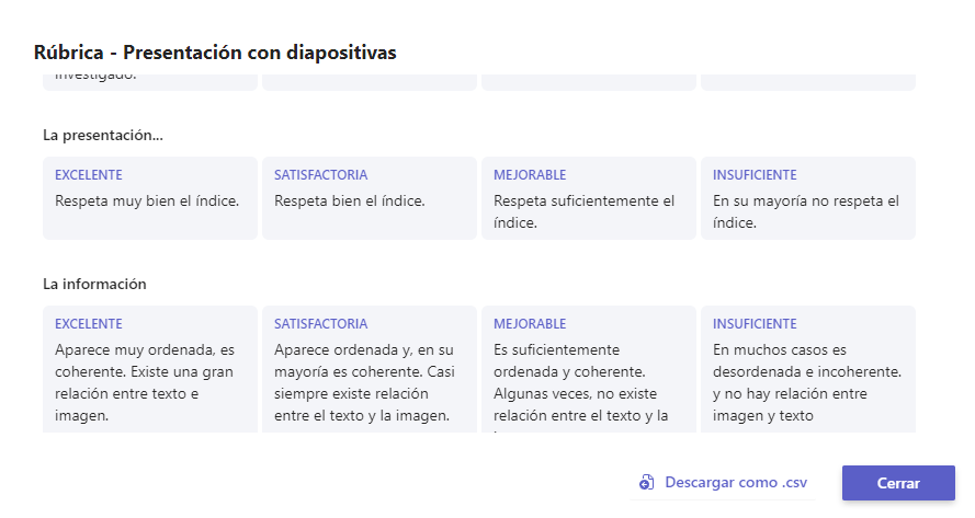 Cuando usamos TEAMS para evaluar las actividades mediante las rúbricas, la comunicación será entre el profesor y el dueño de la cuenta MICROSOFT 365, en este caso, el alumno. Una vez que se hace la comunicación de la calificación de la tarea y se aclaran todas las dudas, se «cuelgan» en Esemtia para dar esta información también a las familias.